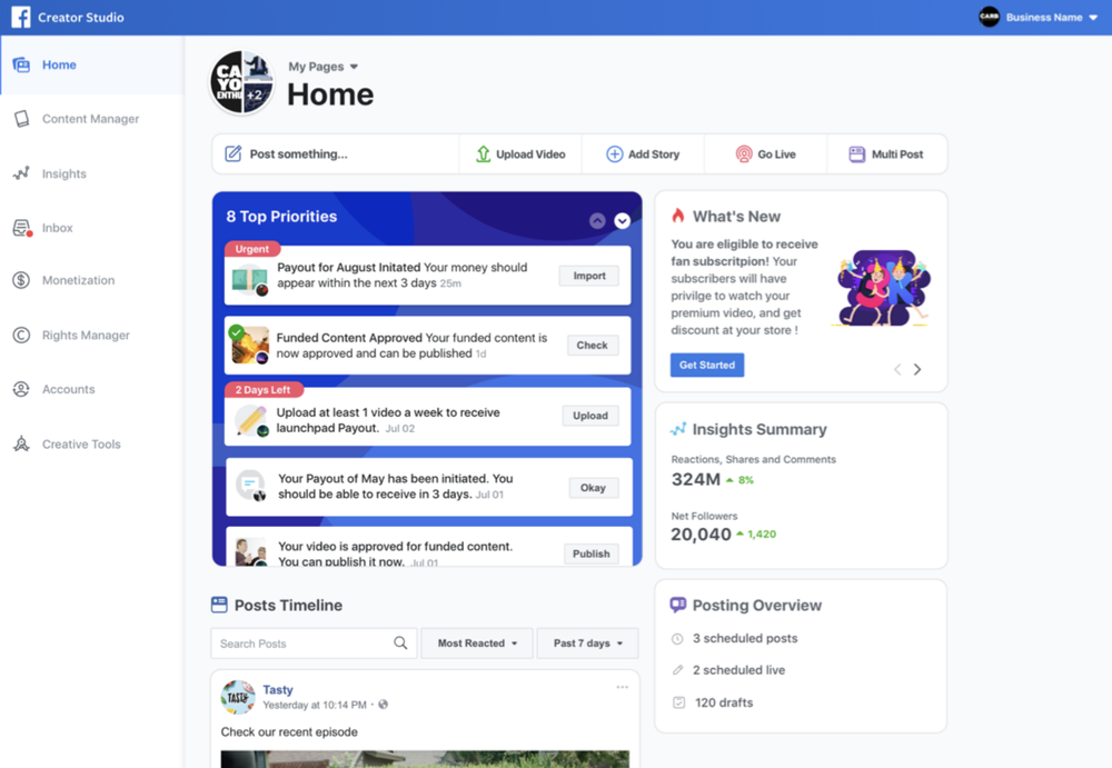 The Publishing Tools team at Facebook created a centralized management space for users with multiple media Pages. As the Content Designer, I named and helped launch the initial version of Creator Studio. After completing a competitive audit of similar products, I proposed a number of possible names and drove consensus across app leads for the final name. I wrote the new user experience for Creator Studio as well as the UX content throughout the product.